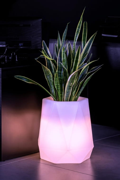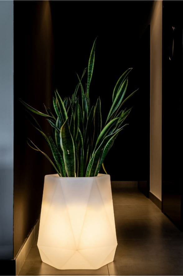 Duża geometryczna oraz designerska donica Flavi, występuje w różnych wariantach kolorystycznych oraz w wersji podświetlanej żarówką LED. Ułatwia to skomponowanie różnych aranżacji. Bardzo ciekawą parę Donica Flavi tworzy z wyższą i smuklejszą Donicą Siena a różne wariacje tego zestawu, ozdabiają pięknie taras, ogród, czy przestronne hole galerii handlowych.