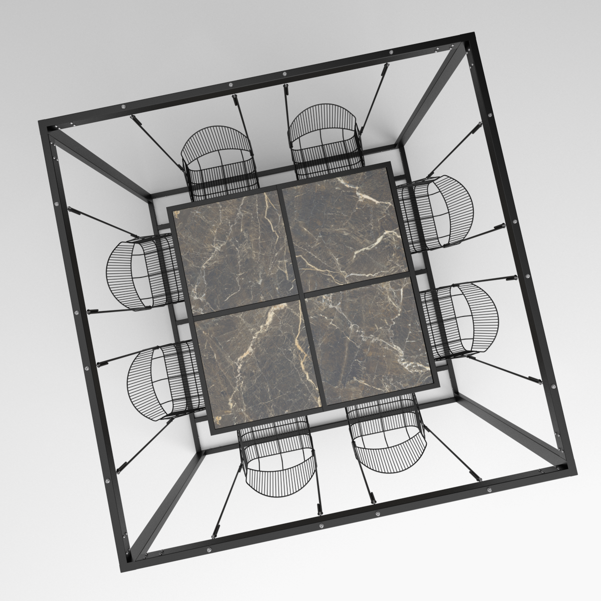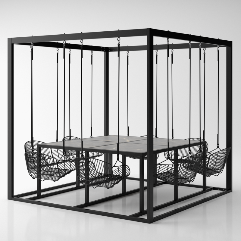 Huśtawka hybrydowa 8 osobowa, kwadrat, metalowe siedziska - Swing table