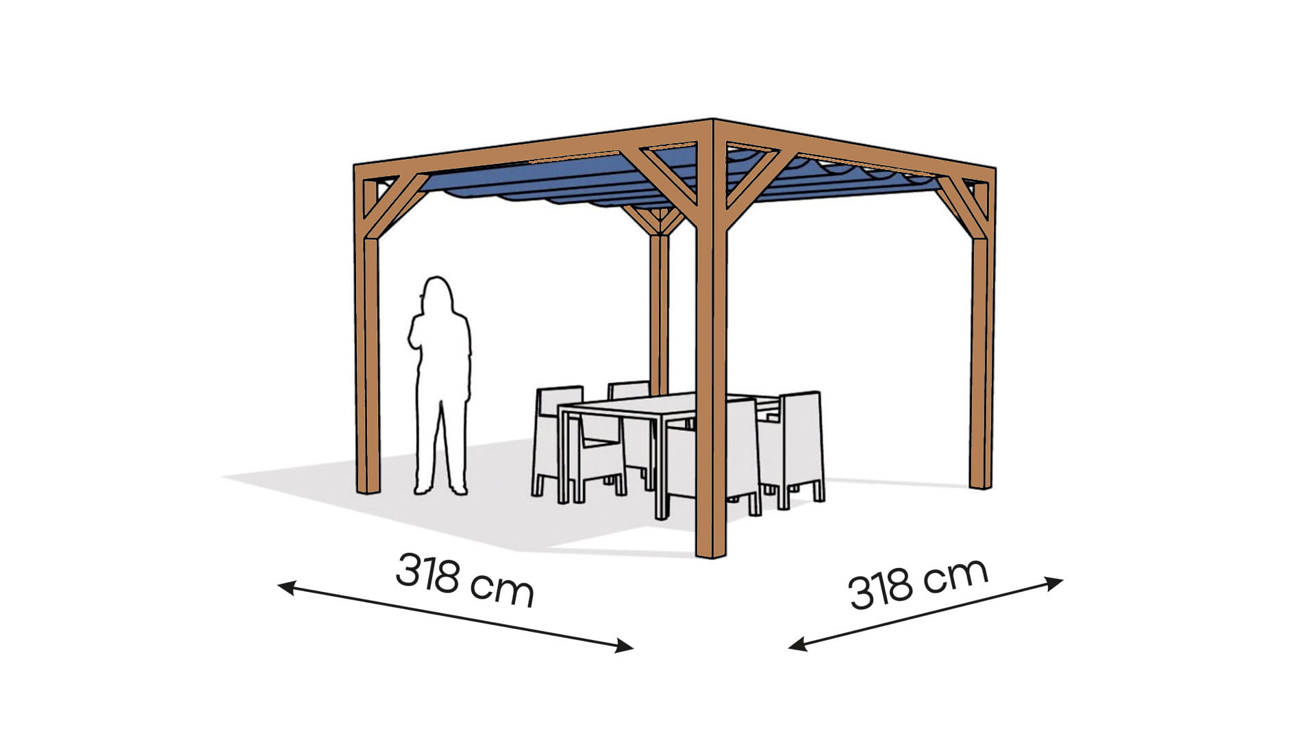 wymiary zewnętrzne pergoli: 318 x 318 cm,