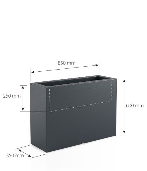 Donica Lungo Grande jak wszystkie donice kolekcji Quadrum, może ozdabiać balkon, taras czy ogród przez cały rok, ponieważ wykonana jest z odpornego materiału - polietylenu. Wyprodukowana w Polsce przez firmę Monumo. Jest wytrzymała na temperatury od -30° do +60°. Polietylen jest odporny na promieniowanie UV i uszkodzenia mechaniczne. Donicę łatwo utrzymać w czystości, ponieważ wystarczy zwilżona ściereczka oraz woda z mydłem w płynie.