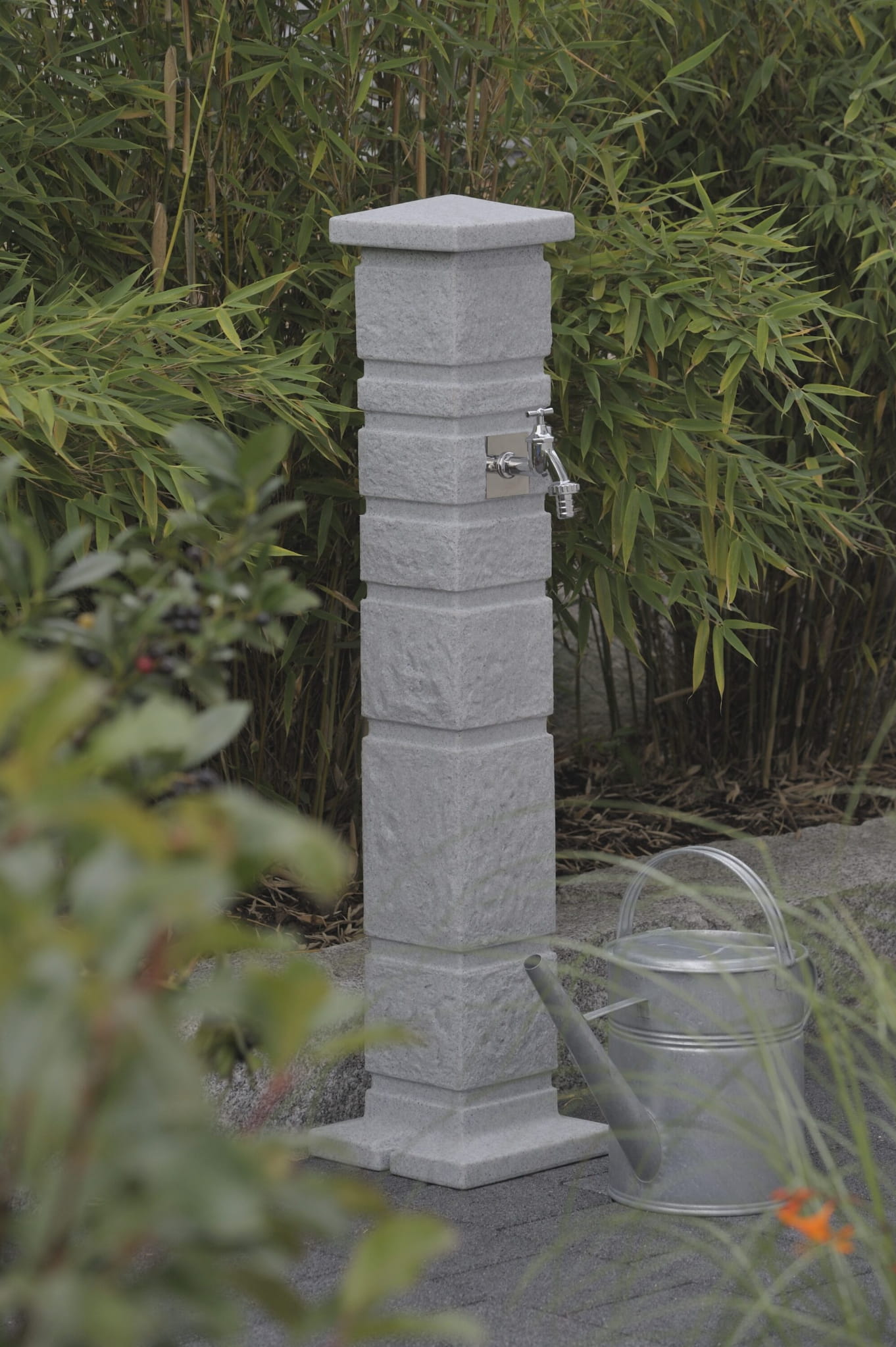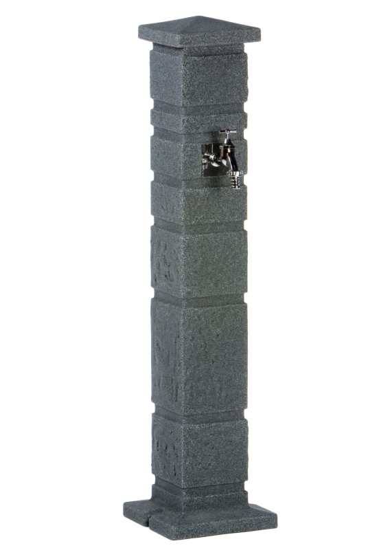 Ogrodowy punkt poboru wody jest wykonany z tworzywa sztucznego o wysokiej jakości, imitującego odpowiednio kamień.