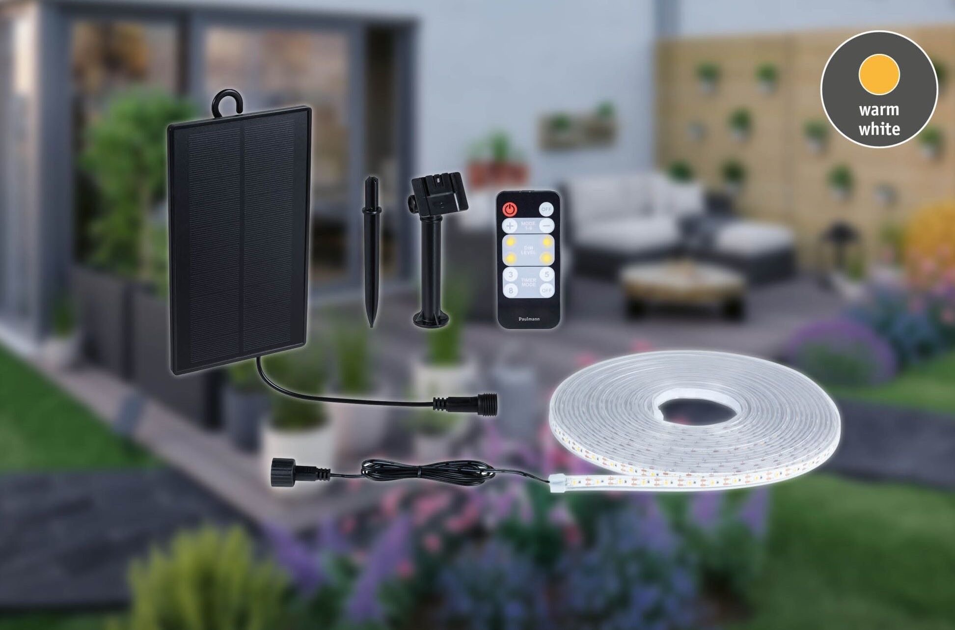 Taśma zewnętrzna LED solar 10m 3,2W DIM 3000K 28lm/m czujnik zmierzchu pilot 5V IP44 czarny / tworzywo sztuczne kod produktu PAULMANN PL71195