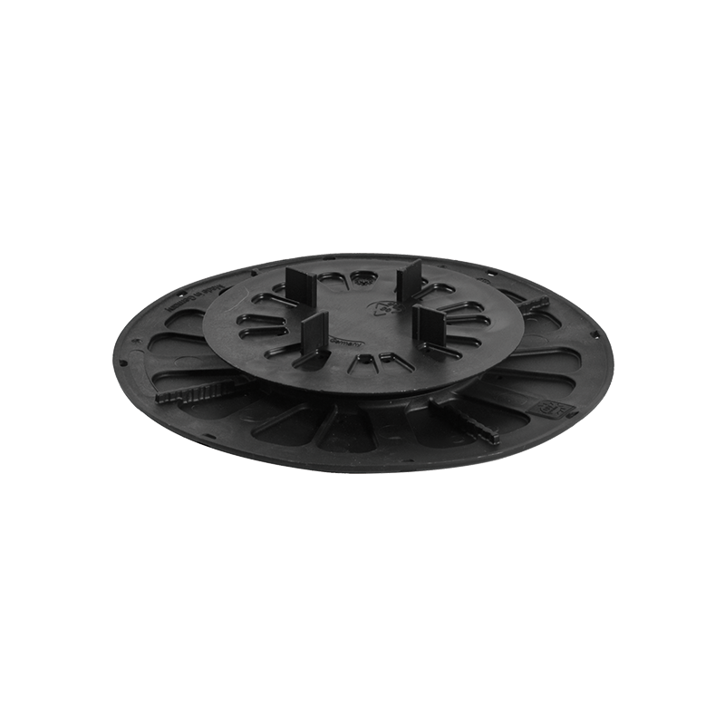Dolna stopa naszych wsporników posiada średnicę 200 mm, jest w 100% zabudowana (powierzchnia ponad 300 cm2) i nie ma wyciętego pośrodku otworu. Dzięki tym zaletom wsporniki IPS nie zapadają się w podłożu oraz nie uszkadzają powłok izolacyjnych. Wsporniki IPS można używać bezpośrednio (bez dodatkowych podkładek) na naturalnie bądź mechanicznie utwardzone podłoże, zagęszczone kruszywo oraz na różnego rodzaju powłoki izolacyjne i folie dachowe.