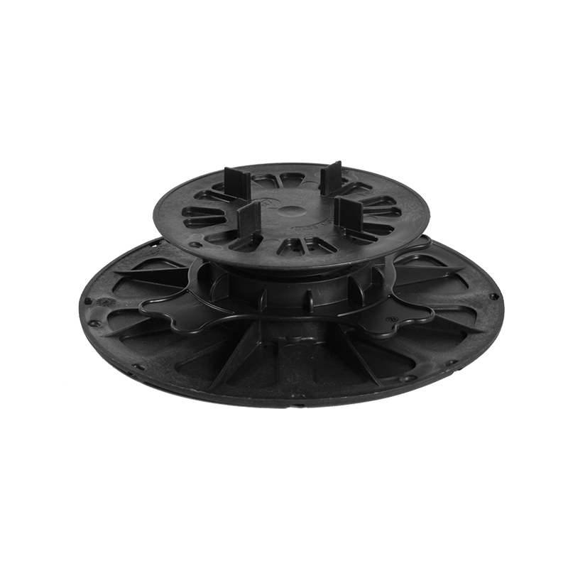 Dolna stopa wspornika ma średnicę 200 mm. Jest w 100% zabudowana i otworu wyciętego w środku. Dzięki tym zaletom wspornik nie zapada się w podłożu oraz nie uszkadza powłok izolacyjnych. Górny talerz ma średnicę 130 mm.