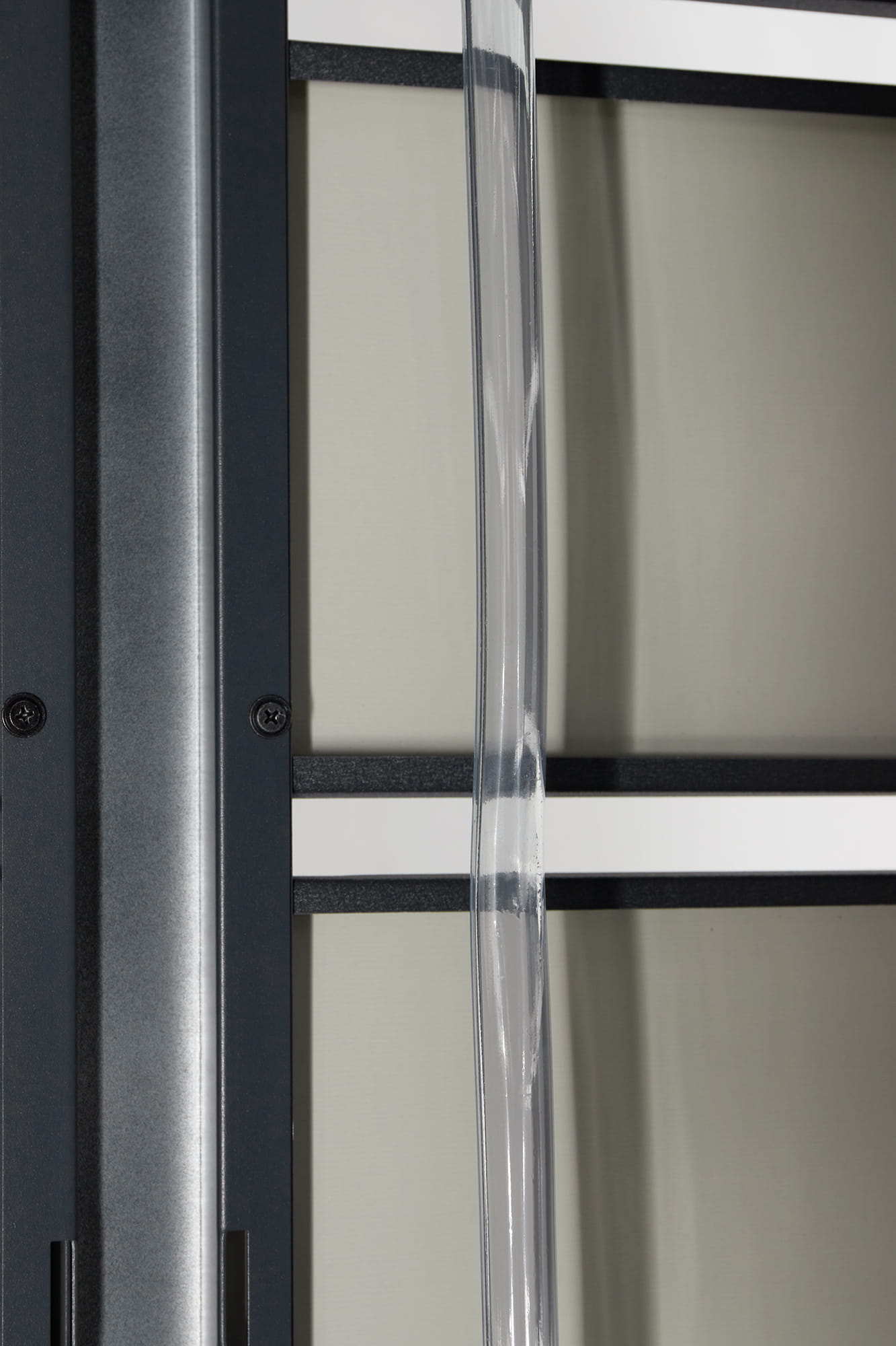 Podłoże należy odpowiednio przygotować (wylewka betonowa lub kostka brukowa), pamiętając o jego wypoziomowaniu. Zalecamy, aby powierzchnia pod zabudowę była większa o minimum 10 cm z każdej strony. Po montażu konstrukcję należy zakotwiczyć (kotwy 8–10 cm). Każda sekcja posiada 4 miejsca pod kotwienie + 2 dodatkowe otwory w ramie.