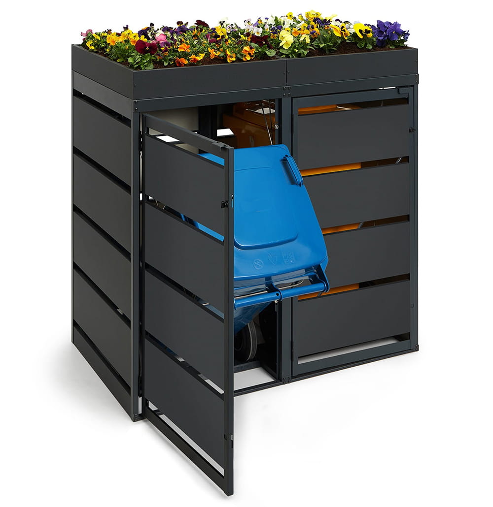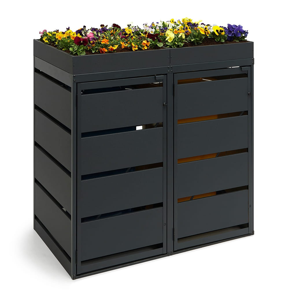Zabudowa na 2 kosze 120 L z kwietnikiem — trwała i funkcjonalna
