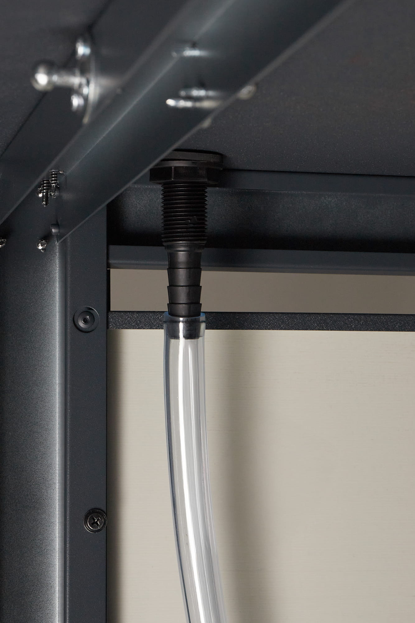 - Wąż ze złączką do odprowadzania wody z kwietnika w każdej sekcji.