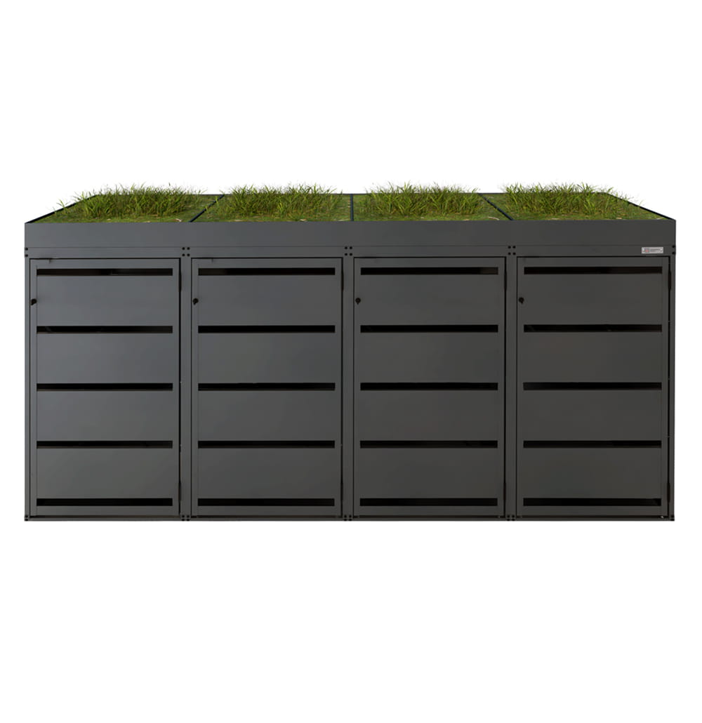 Zabudowa na 4 kosze 120 L z kwietnikiem — trwała i funkcjonalna