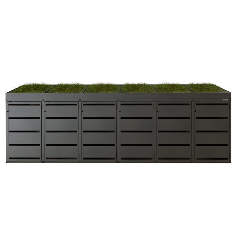 Zabudowa na 6 koszy 120 L z kwietnikiem — trwała i funkcjonalna