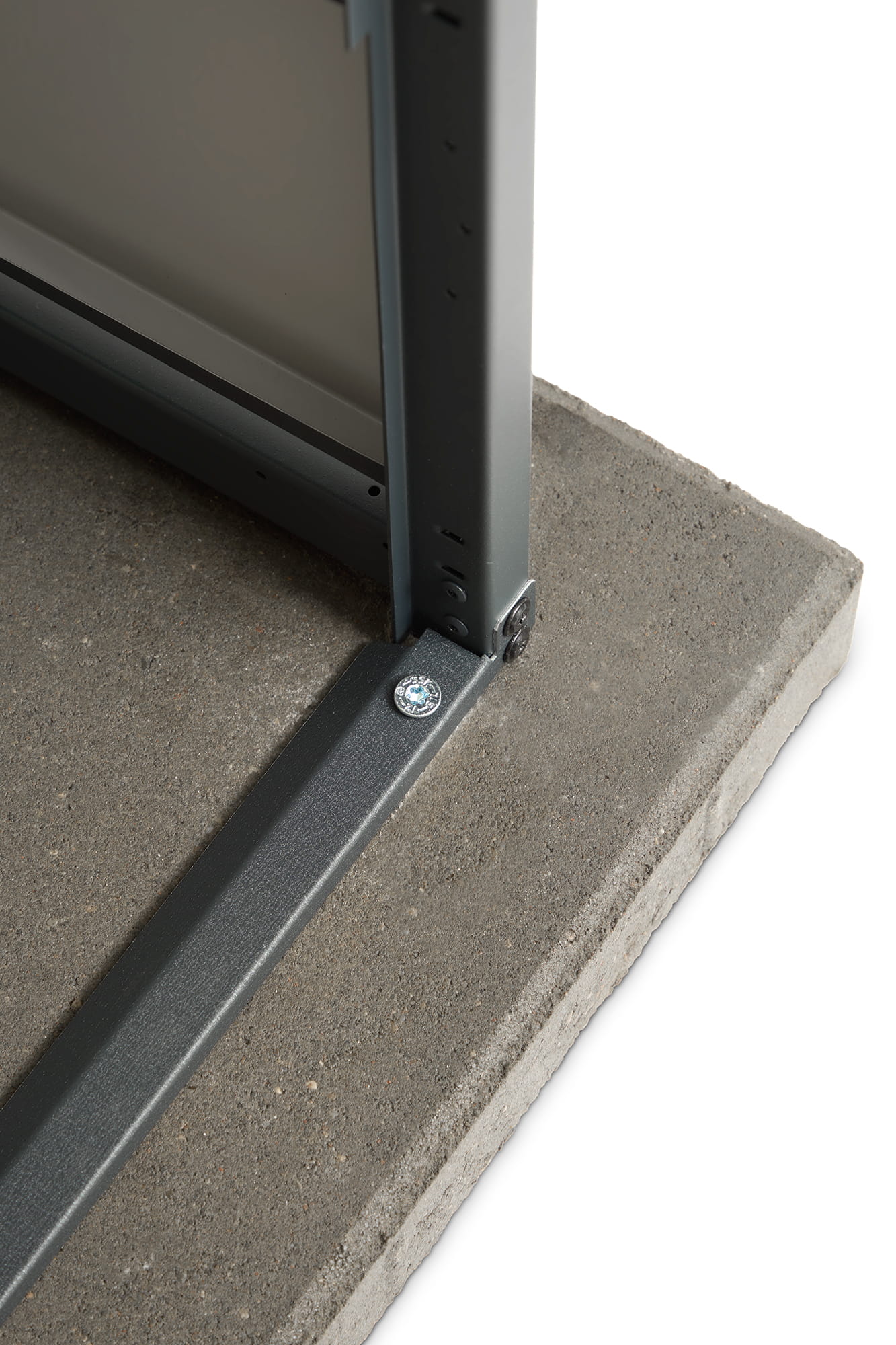 Podłoże należy odpowiednio przygotować (wylewka betonowa lub kostka brukowa), pamiętając o jego wypoziomowaniu. Zalecamy, aby powierzchnia pod zabudowę była większa o minimum 10 cm z każdej strony. Po montażu konstrukcję należy zakotwiczyć (kotwy 8–10 cm). Każda sekcja posiada 4 miejsca pod kotwienie + 2 dodatkowe otwory w ramie.